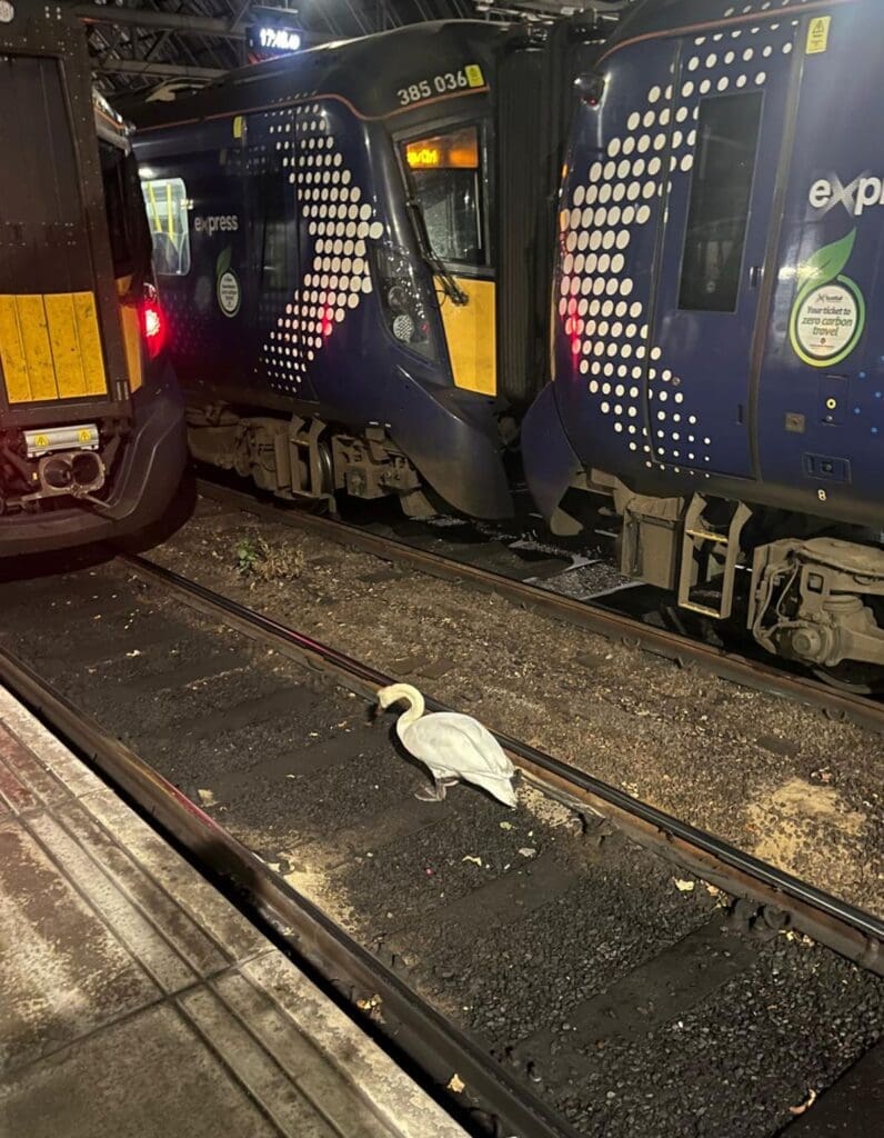 “We’re dealing with a swan on the tracks at Glasgow Central high-level station. Services to/from the station are being disrupted, but trains are still moving at a reduced speed,” the railway operator said.